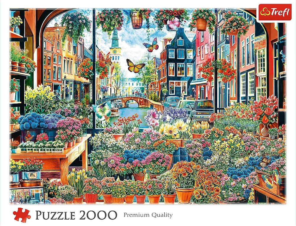 Užijte si relaxaci a výzvu s velkoformátovým puzzle TREFL o 2000 dílcích, které zachycuje malebné květinářství v Amsterdamu. Po složení vznikne působivý obraz o rozměrech 96 × 68 cm, ideální k zarámování i jako dekorace do interiéru.