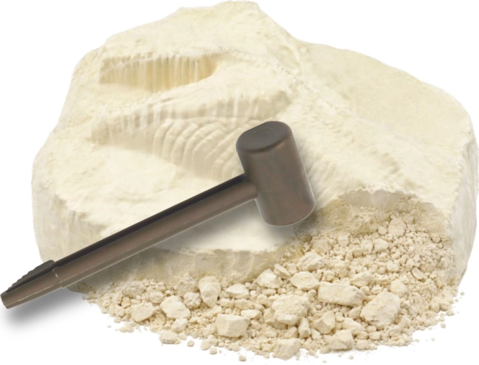 Staňte se malým paleontologem a vytěžte z „fosilního“ kamene vlastní dinosauří nález. Pro snadnější práci kámen na pár minut namočte do vody, čímž hmota změkne a půjde lépe odstraňovat. Bezpečná, hravá a poučná aktivita pro děti, která přináší vzrušení z objevování i praktické učení.