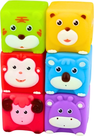 Bezpečný měkký materiál bez ostrých hran je vhodný pro každodenní hraní i do koupele. Sada 6 kostek je skvělým dárkem, který spojuje zábavu a učení – děti si procvičí barvy, názvy zvířat i skladbu jednoduchých konstrukcí.