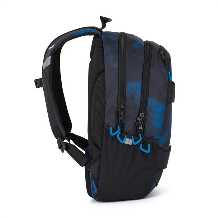 Vnitřní prostor je chytře řešen: dvě hlavní komory pojmou knihy i složky, vyztužená kapsa bezpečně ochrání notebook, menší kapsa a karabina udrží pořádek v drobnostech. Praktická skrytá kapsa na zádech uschová cennosti, boční kapsa je připravena na láhev. Reflexní prvky zvyšují viditelnost při cestě do školy i domů.
