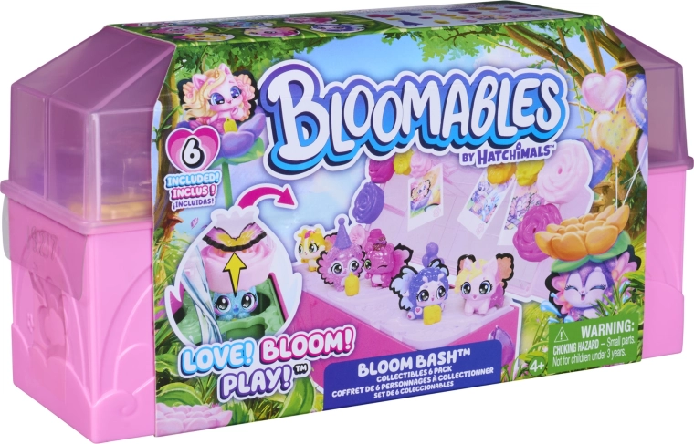 Vstupte do světa fantazie s kolekční sadou Hatchimals Bloomables Bloom Bash. Stačí nalít vodu do srdce herního kufříku a květy začnou „růst“, aby odhalily ukryté postavičky – od mer‑jednorožce přes králíčka až po pejska. Po odhalení proměníte kufřík v taneční parket, připnete figurkám barevná křidélka a ozdobíte víko fotkami Hatchi‑Pics.