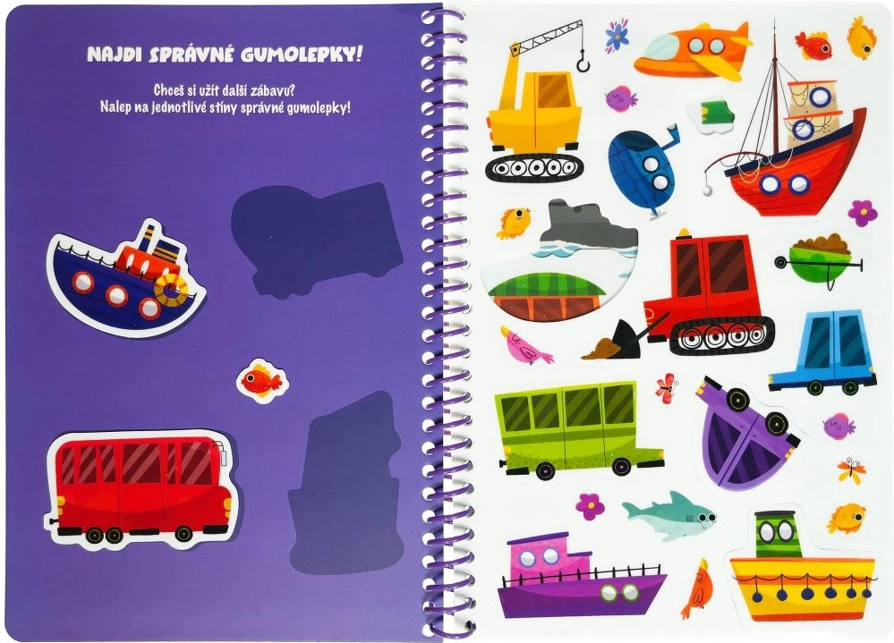 Zábavná knížka s gumolepkami pro malé milovníky dopravy přináší 50 znovupoužitelných samolepek a 7 různých prostředí pro tvorbu vlastních příběhů. Díky lesklým stránkám a snadnému lepení i odlepování děti rozvíjejí jemnou motoriku, koordinaci oko–ruka a kreativitu. Gumolepky lze jednoduše omýt vodou a používat znovu a znovu.
