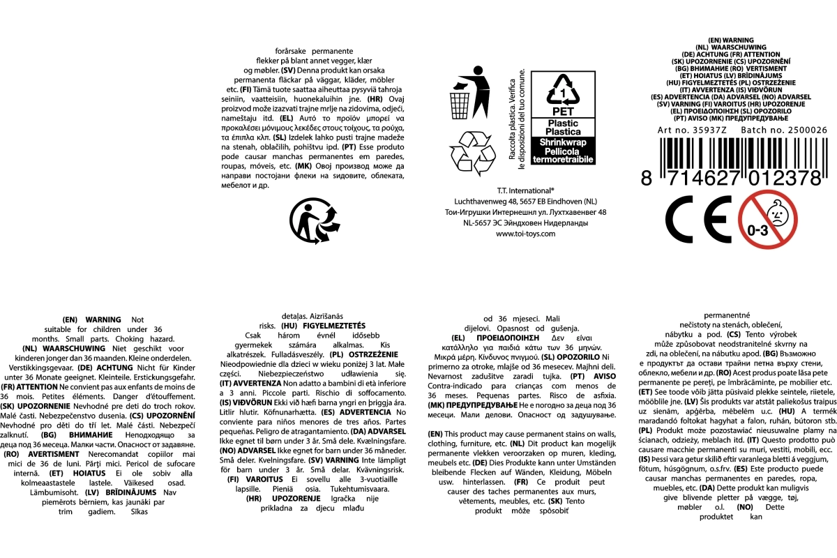 Každý kus je uložen v průhledném plastovém kelímku o kompaktních rozměrech 6 × 6 cm, který udržuje sliz čerstvý a čistý. Díky třpytkám a konfeti efektu působí velmi atraktivně a láká k dalšímu hraní. Barvy jsou dodávány v různých odstínech podle aktuální dostupnosti.