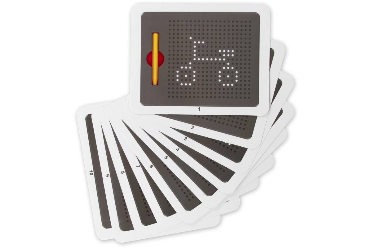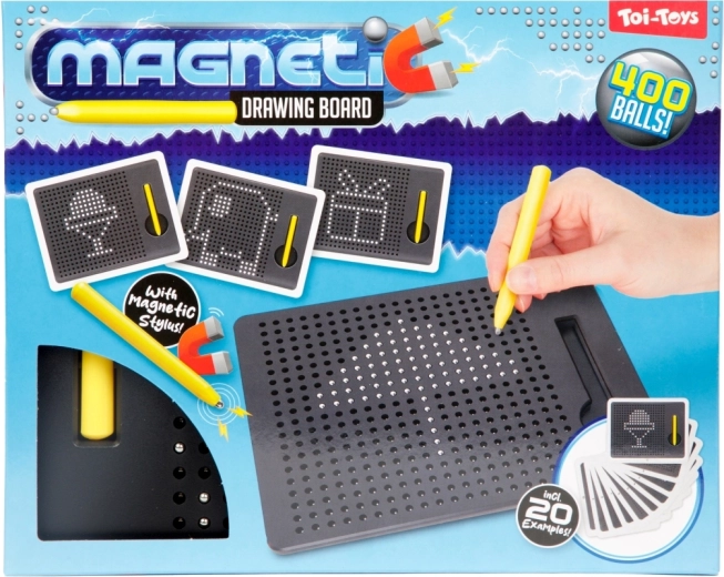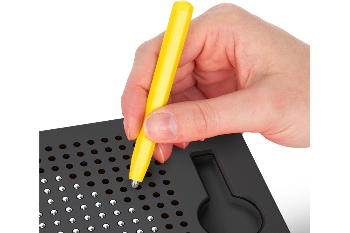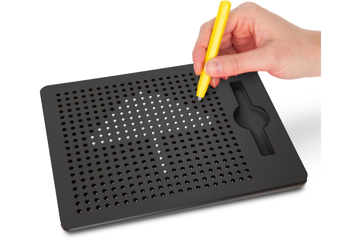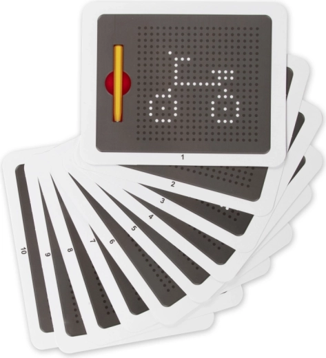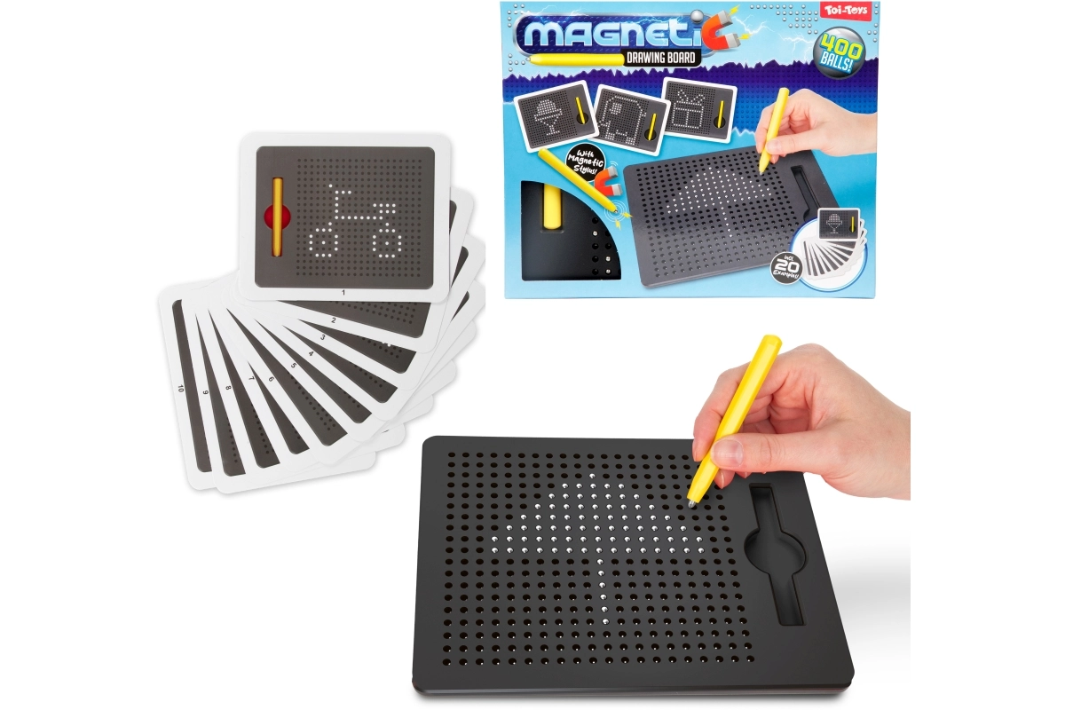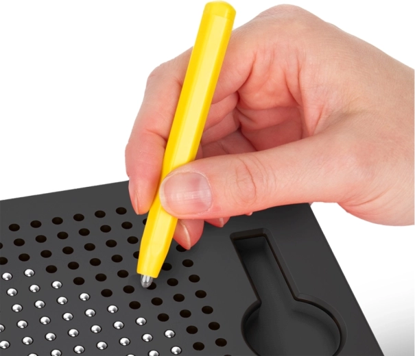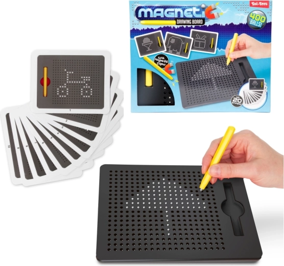 Tato magnetická tabulka umožňuje dětem kreslit pomocí magnetického pera, které vytahuje kovové kuličky na povrch a vytváří tak přesné tečkované obrázky. Bez inkoustu a bez nepořádku – ideální pro opakované používání a kreativní hraní.