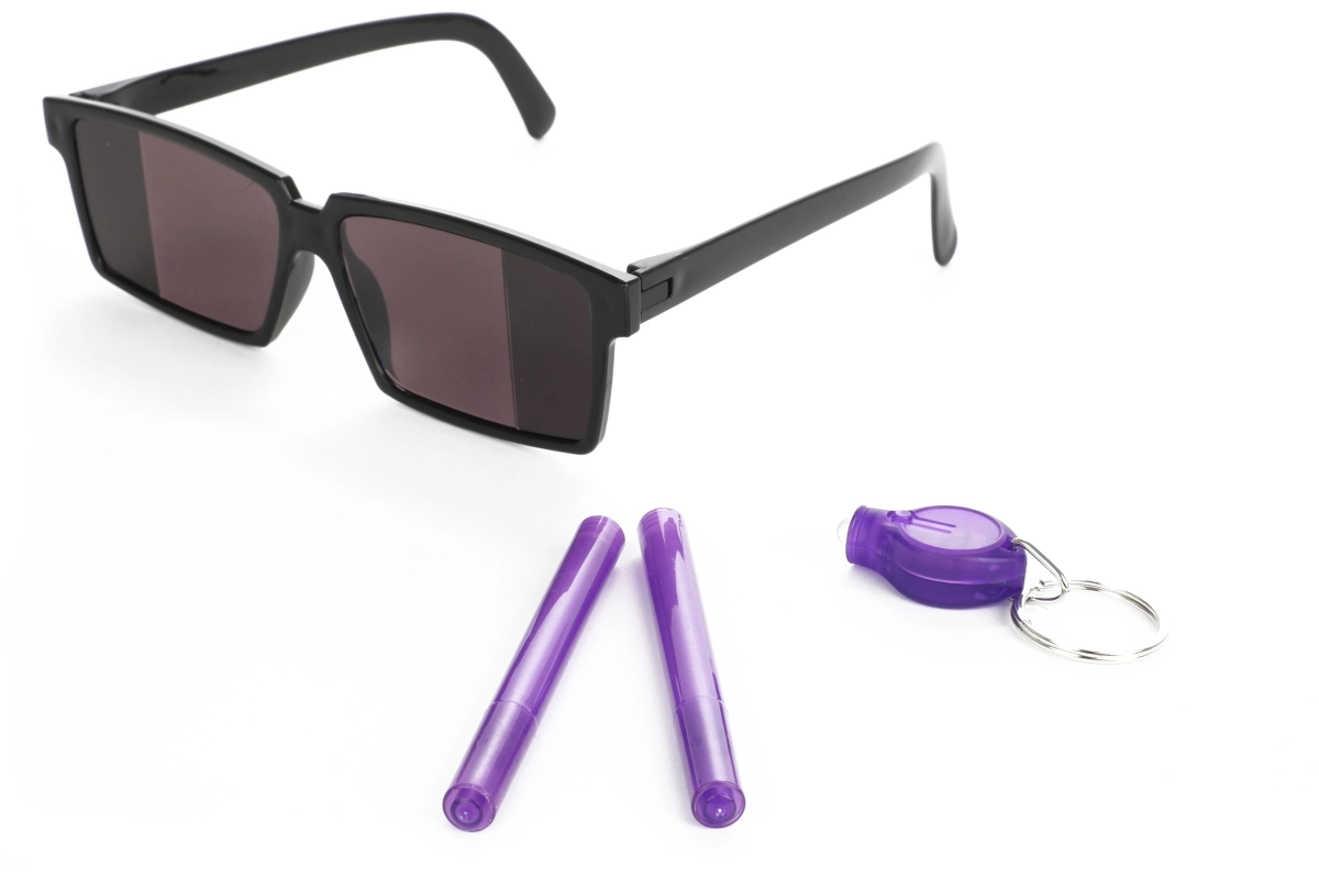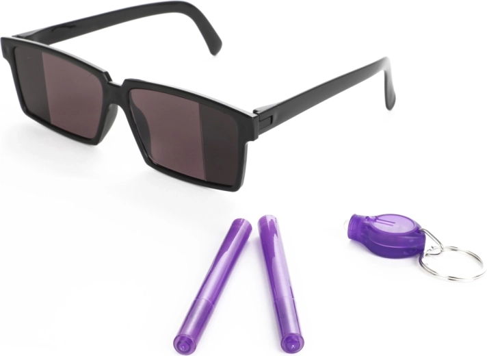 - 2 neviditelná (kouzelná) pera, UV svítilna, speciální brýle