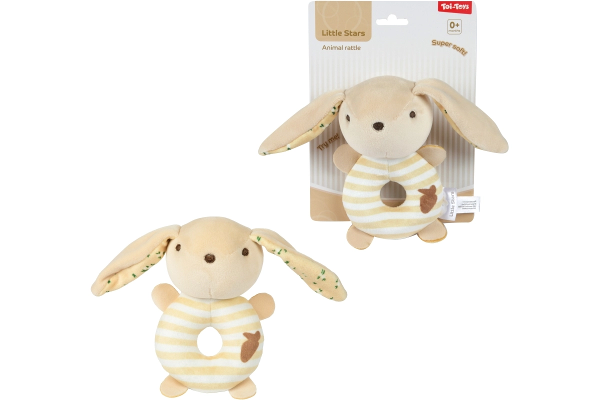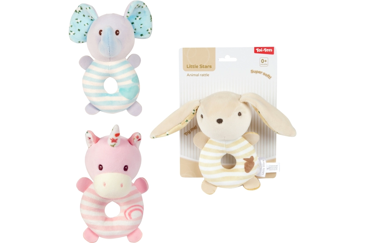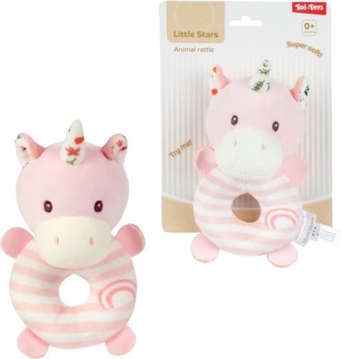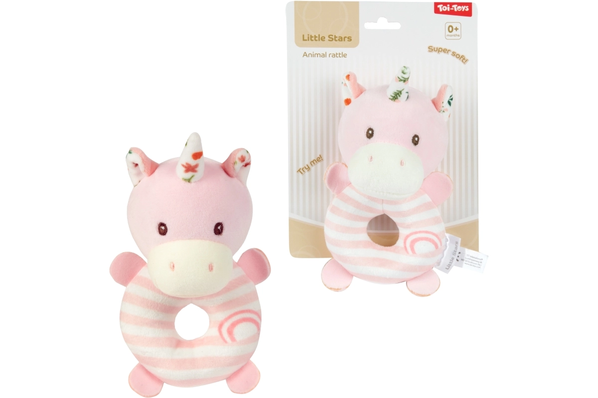 Roztomilé plyšové chrastítko se zvířecím motivem pro nejmenší děti potěší jemnými pastelovými barvami a příjemným materiálem. Je lehké do ručičky, podporuje rozvoj smyslů a jemné motoriky. Měkký plyš, jemný chrastivý zvuk a bezpečné provedení pro věk 0+ dělají z tohoto chrastítka ideální první hračku pro miminko.