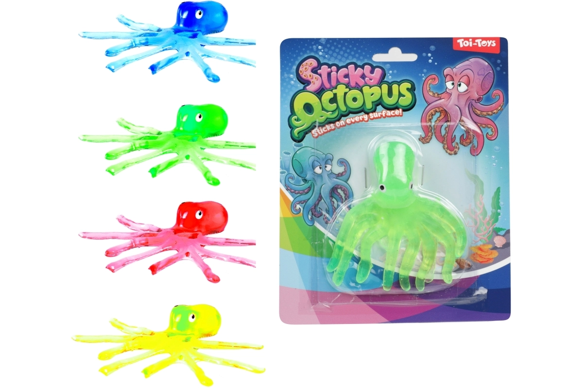 Zábavná lepkavá chobotnice s přísavkami pro děti od 3 let. Skvěle se přichytává na hladké povrchy a přináší hodiny hry a smíchu. Dostupná v různých barvách dle skladu. Snadné přichytávání, měkký a pružný materiál a kompaktní rozměry pro hraní doma i na cestách.