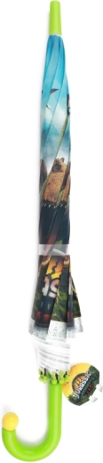 Deštník má manuální vystřelovací mechanismus pro rychlé otevření, bezpečnostní zakončení drátů a zaoblený hrot pro klidnější používání. Zelená J-rukojeť se dobře drží a snadno se zavěsí. Zapínání na druk udržuje deštník kompaktně složený, balení v sáčku usnadňuje uložení.