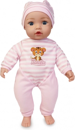 Roztomilé miminko Natalia potěší každé dítě realistickými funkcemi. Po stisknutí bříška vydává zvuky smíchu, pláče a žvatlání a umí říct „máma“ a „táta“. Ideální dárek pro rozvoj fantazie a pečovatelských dovedností.