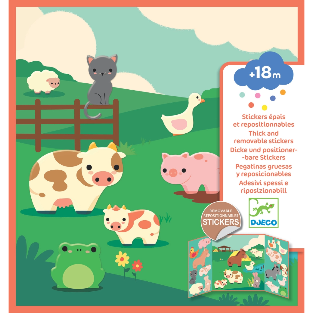 Objevte kouzlo opakovaného lepení s kreativní sadou od značky DJECO. Přemístitelné samolepky s motivem zvířat na farmě umožní dětem snadno lepit, odlepovat a znovu skládat vlastní farmářské příběhy – bez nepořádku a bez zbytků lepidla.