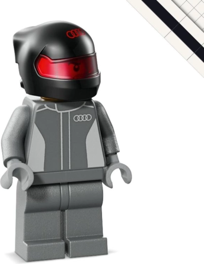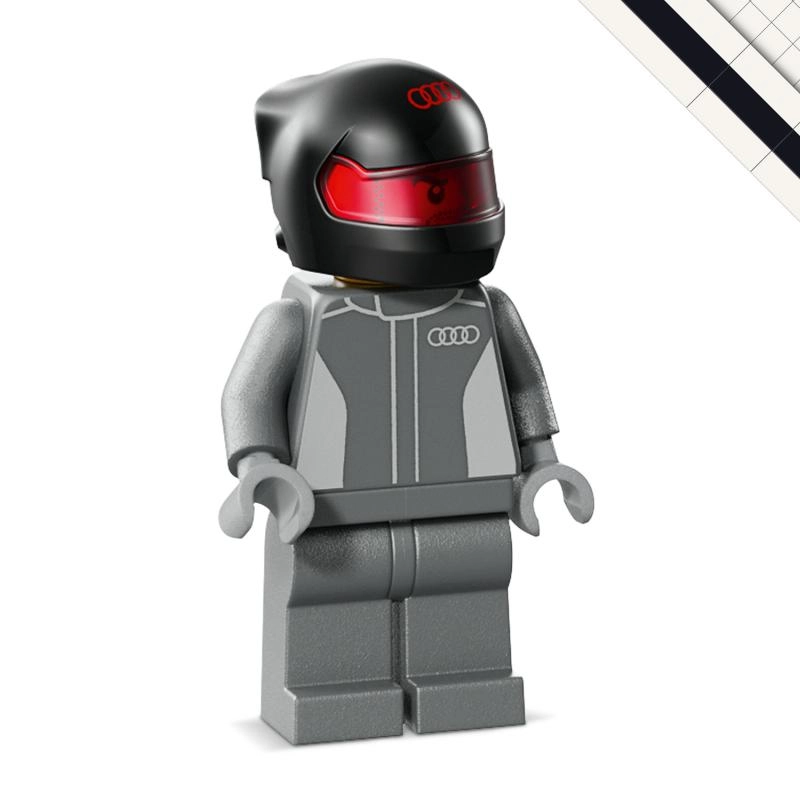 - Minifigurka řidiče AUDI s helmou – připravená usednout do kokpitu.