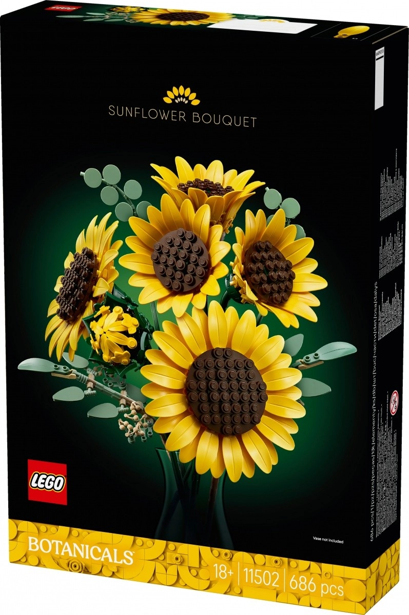 Vytvořte si doma slunečnou atmosféru s buketem slunečnic z kolekce LEGO Botanicals. Sestavíte poupě, tři rozkvétající a dva plně rozvité květy, které doplní čtyři eukalyptové stonky. Díky promyšleným stavebním prvkům mají květy věrné tvary okvětních lístků a texturované středy, přičemž stonky a listy lze snadno polohovat pro perfektní kompozici do vázy.