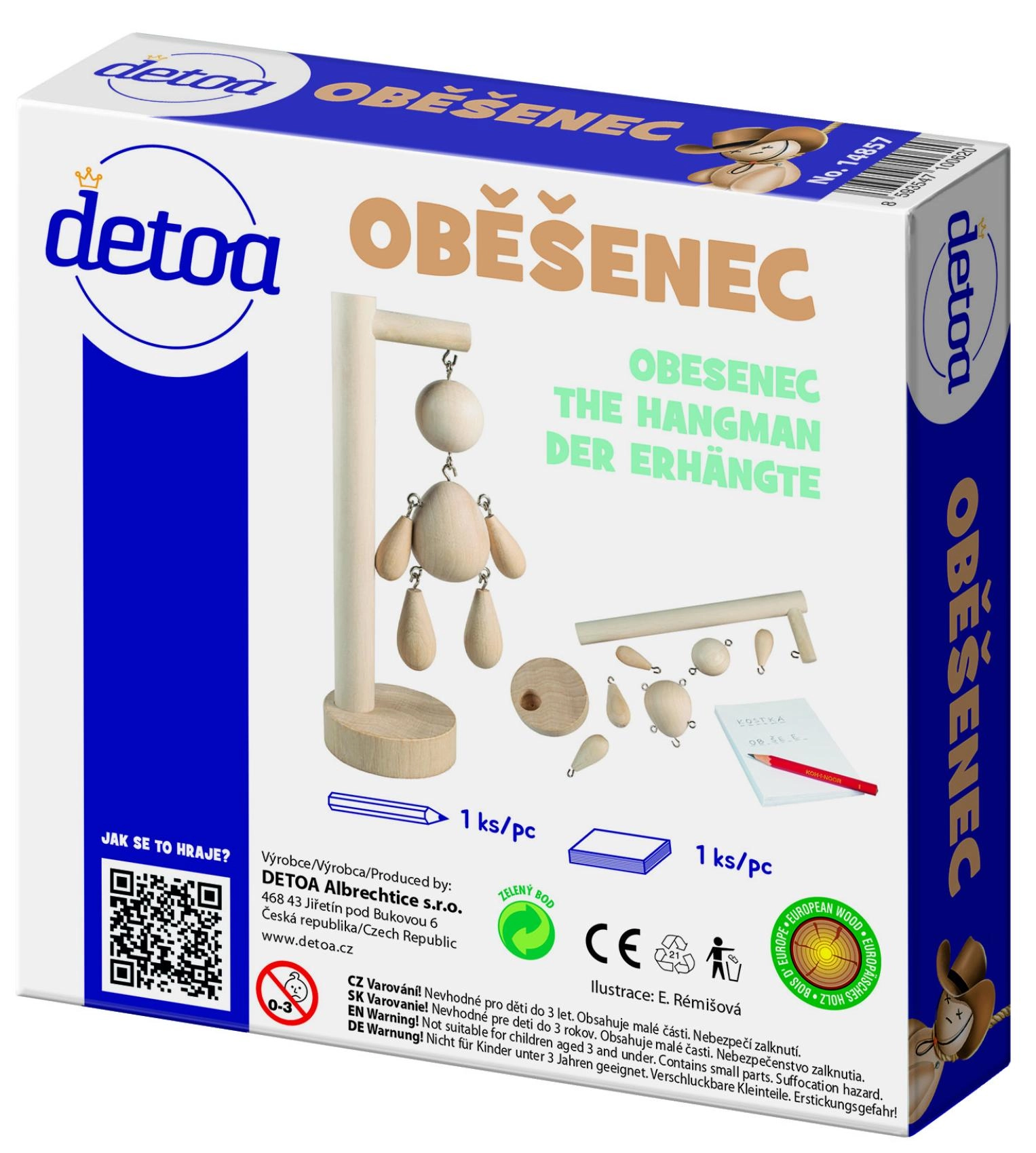 Oběšenec je morbidně zábavná, ale chytrá slovní hra pro dva hráče. Jeden vymyslí slovo, druhý hádá písmena – a s každým omylem se blíží nevyhnutelné pověšení. Dřevěné provedení a kompaktní krabička zaručí dlouhou životnost i snadné přenášení.
