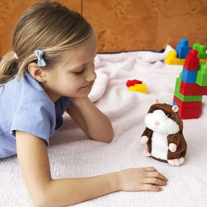 Křeček věrně zopakuje slova a krátké věty roztomilým hlasem – skvělá interaktivní zábava pro děti i dospělé.