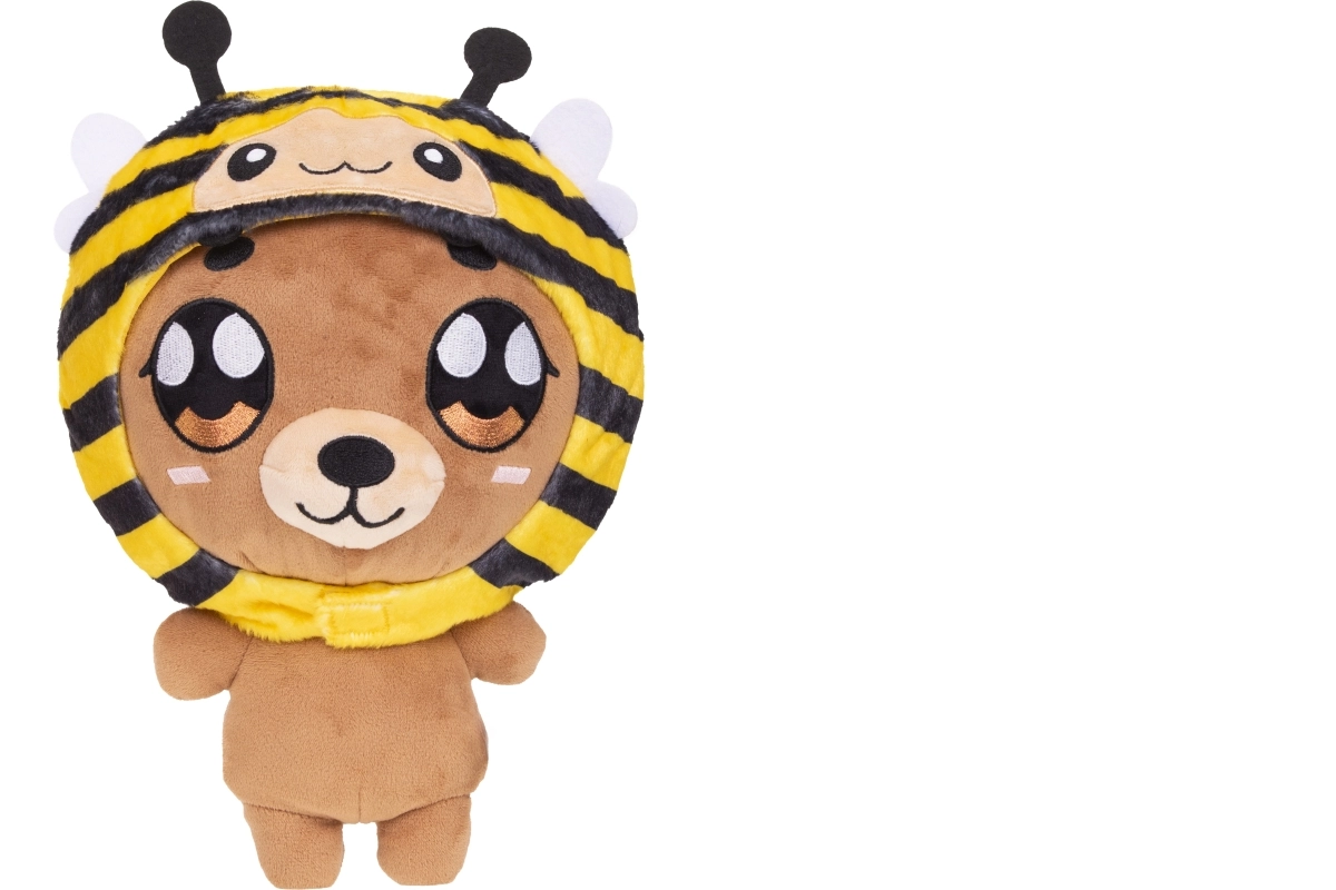 Roztomilý plyšový medvídek v kostýmu pilné včelky je ideální parťák na hraní i mazlení. Díky jemnému plyši, preciznímu vyšívání a bezpečnému provedení je vhodný i pro nejmenší. Odnímatelná kapuce/mikina podporuje jemnou motoriku a z hračky dělá skvělého společníka na cesty. Doporučeno od 10 měsíců+.
