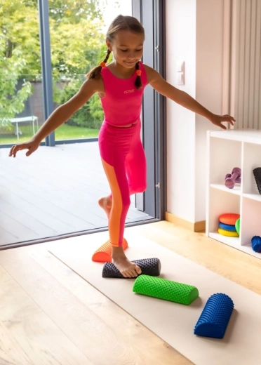 Půlkulatý profil zajišťuje stabilitu při balančních cvičeních. Posílíte hluboký stabilizační systém a zlepšíte držení těla.