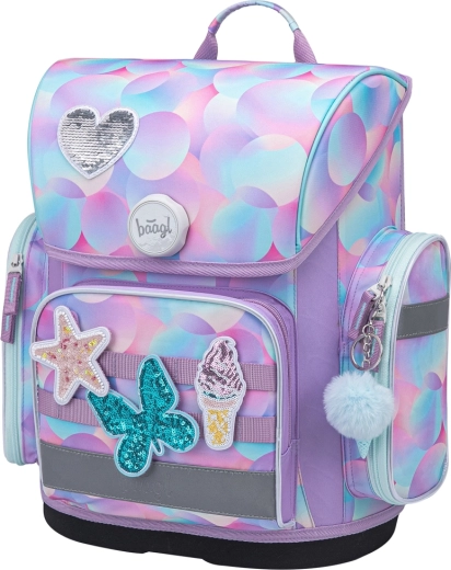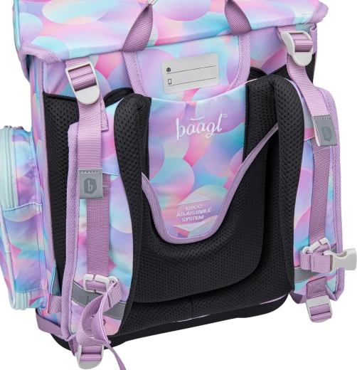 Lehká a ergonomická školní aktovka BAAGL Ergo Candy pro prvňáčky nabízí anatomicky tvarovaná záda, posuvný zádový systém ERGO ADJUSTABLE SYSTEM a pevnou, voděodolnou konstrukci. Díky magnetickému zapínání Fidlock, organizéru s rozvrhem a reflexním prvkům je ideální pro bezpečné a pohodlné nošení do školy každý den.
