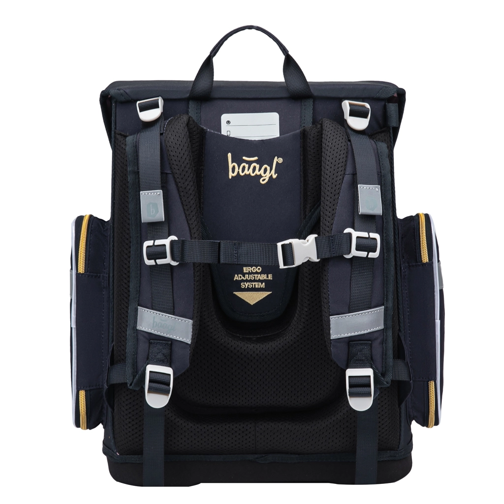 Školní set BAAGL Ergo Unicorn Gold je navržen pro pohodlné a bezpečné nošení školních potřeb od 1. třídy. Ergonomická aktovka s pevným dnem a nízkou hmotností do 1200 g nabízí stabilitu a zdravé rozložení zátěže. Posuvný zádový systém ERGO ADJUSTABLE SYSTEM, plně nastavitelné popruhy a hrudní pásek pomáhají perfektně přizpůsobit batoh postavě dítěte.