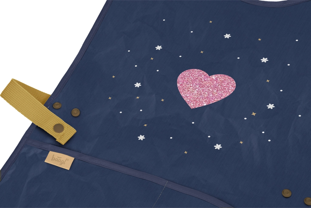 Stylová dětská zástěra BAAGL s motivem Unicorn Gold je ideální pro školní výtvarku, pracovní činnosti i tvořivé kroužky. Nabízí omyvatelný materiál, dvě praktické kapsy a pohodlné nošení pro malé umělce.