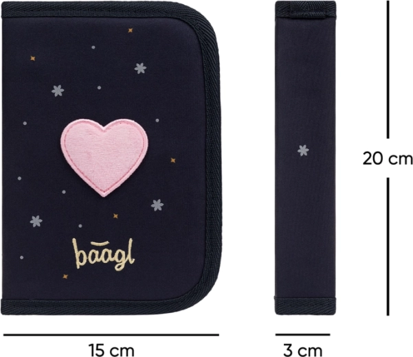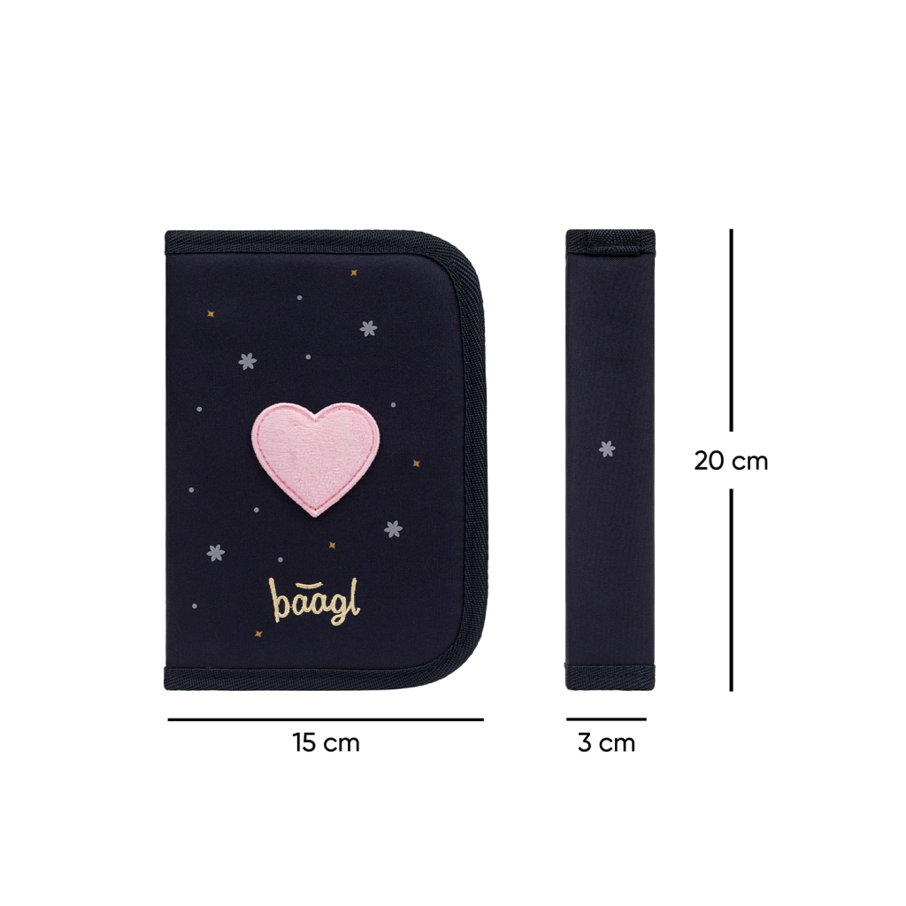 Praktický a odolný penál BAAGL Unicorn Gold kombinuje elegantní design s promyšlenou funkčností. Jednopatrová konstrukce se dvěma chlopněmi a kvalitní zip YKK zajistí pohodlné a bezpečné uložení psacích potřeb. Uvnitř nechybí kapsička na drobnosti a okénko na rozvrh hodin pro rychlý přehled.