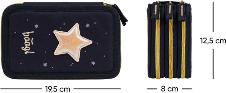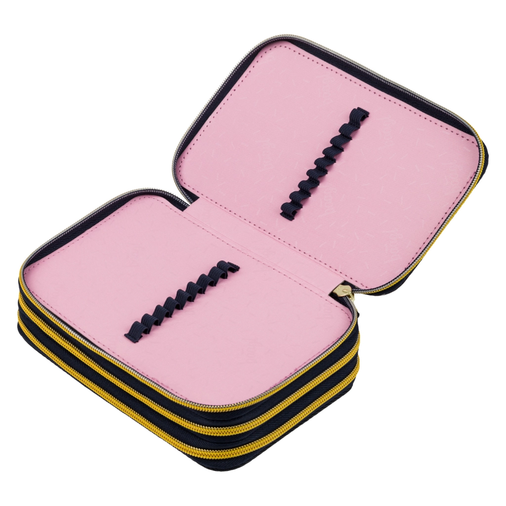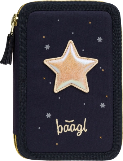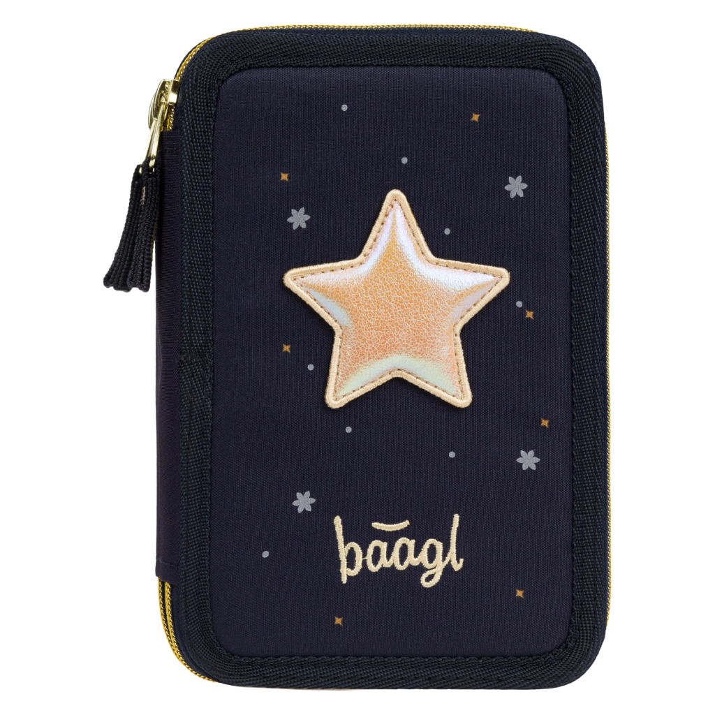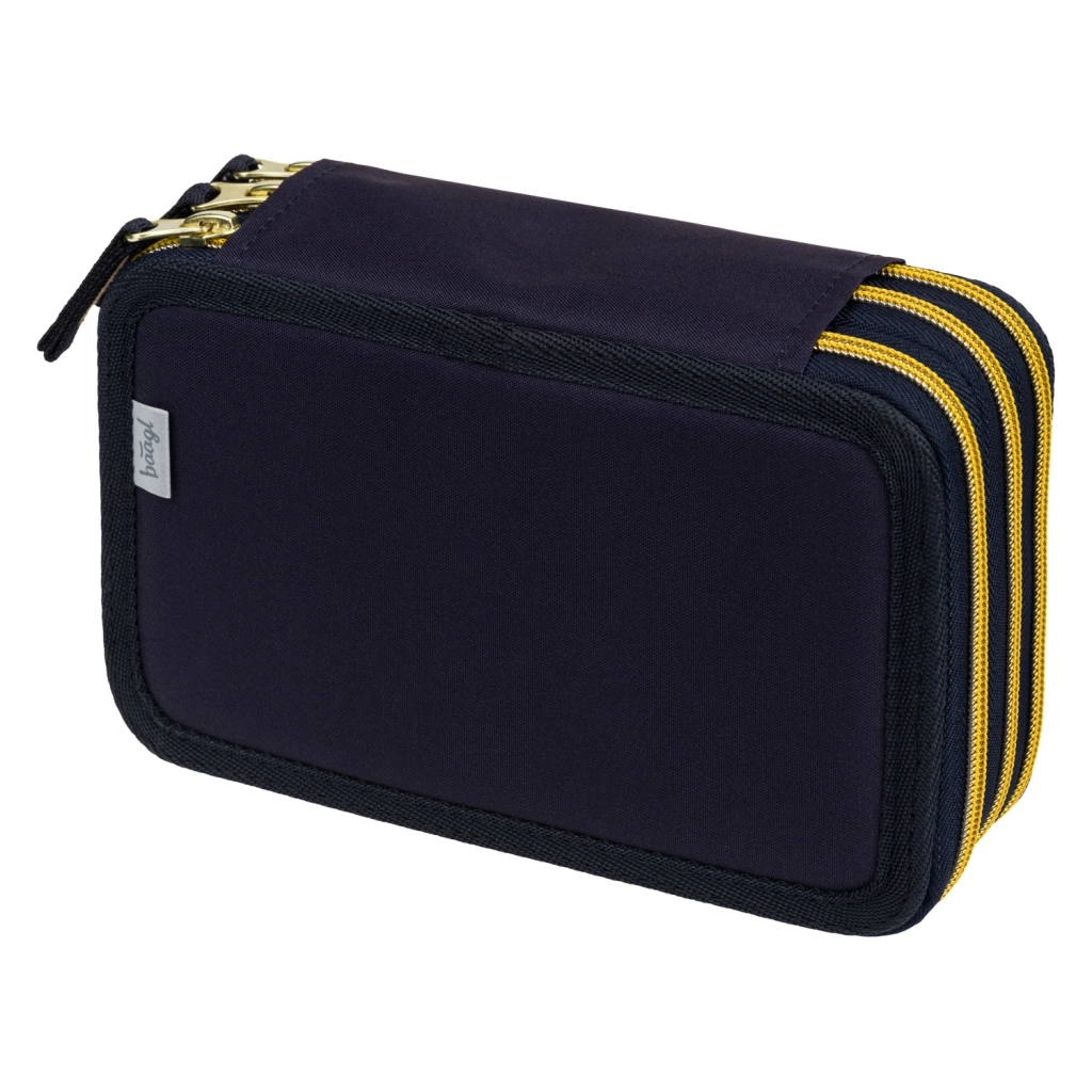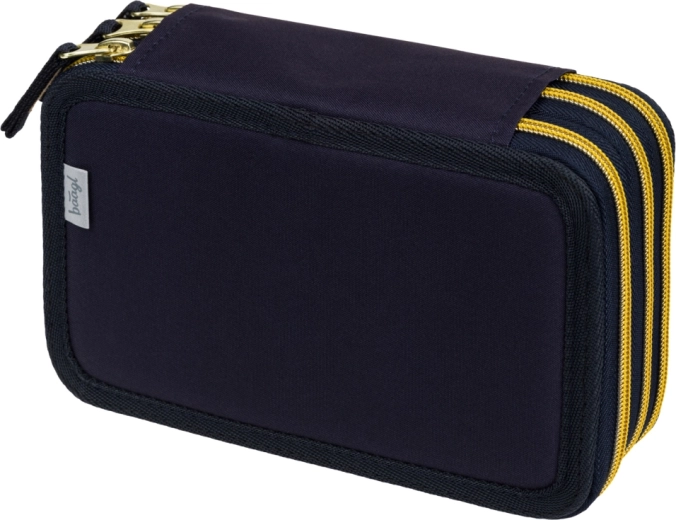 Praktický třípatrový penál BAAGL Unicorn Gold v tmavě modrém provedení s efektními detaily poskytuje promyšlenou organizaci školních potřeb. Tři samostatné zipové komory zajišťují rychlý přístup a pořádek, zatímco zesílený hřbet usnadňuje zavírání i při plném naplnění.