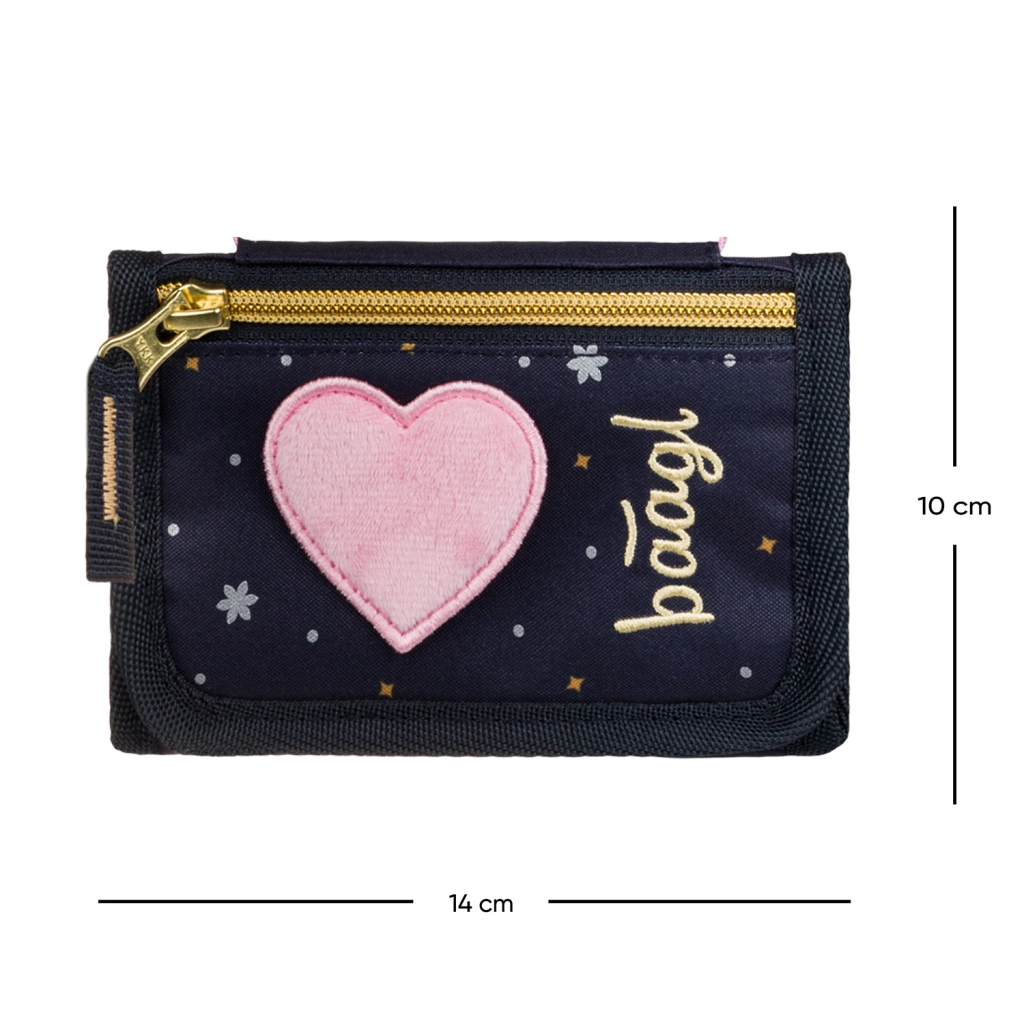 Lehká a odolná peněženka na krk od značky BAAGL v designu Unicorn Gold je ideální pro děti i teenagery. Nabízí bezpečné nošení na krku díky nastavitelné šňůrce s pojistkou, dostatek místa na drobné, čip na oběd či klíče a spolehlivé uzavírání na suchý zip. Vyrobena z recyklovaného a odolného materiálu pro každodenní použití.