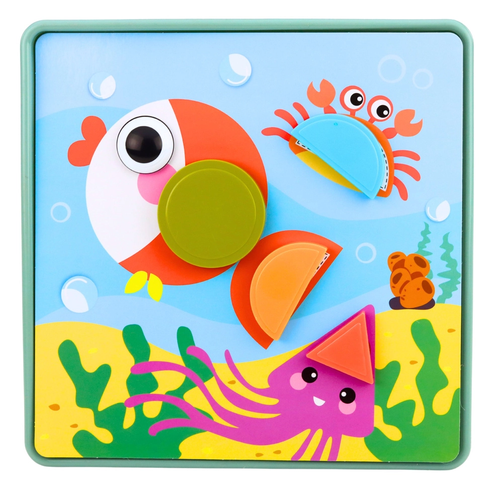 Tato vzdělávací mozaika přináší hravou formu učení – děti přiřazují geometrické dílky k obrázkovým kartám nebo si navrhují vlastní kompozice. Díly jsou příjemné na uchopení a bezpečné pro malé ruce, takže se skvěle hodí pro nácvik přesnosti pohybů a soustředění.