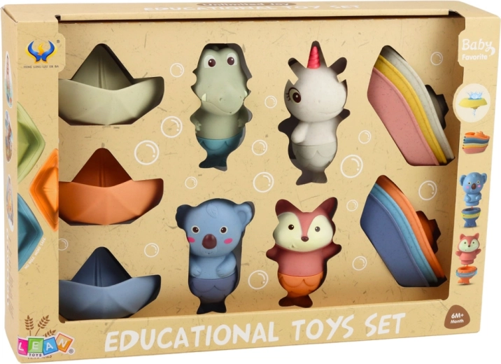 - 4 rozpojitelní gumová zvířátka, 6 plastových lodiček, 3 gumové člunky