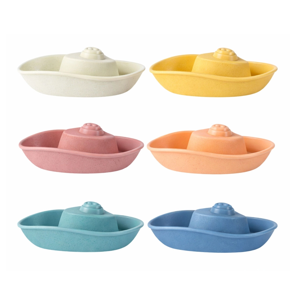 Šest lehkých plastových lodiček v jemných barvách stabilně plave na hladině a je ideální pro nácvik nalévání, přepravu zvířátek i fantazijní hry.