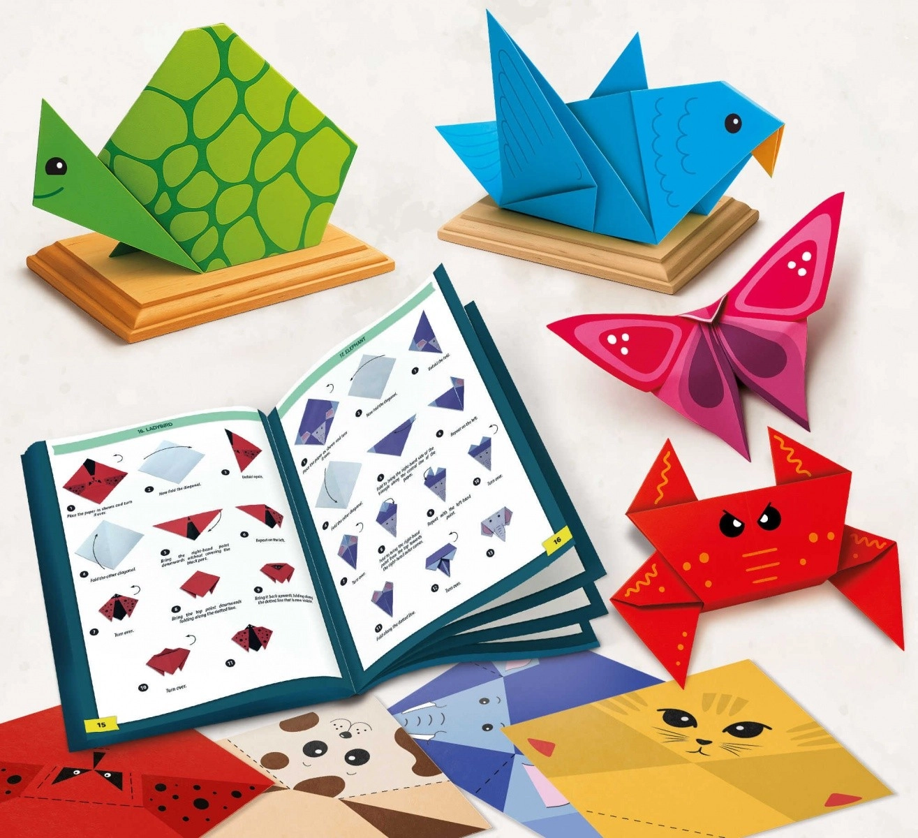 Tento komplexní set origami podporuje děti v systematickém učení – od jednoduchých tvarů až po složitější 3D figurky zvířat a předmětů. Každý arch je označen symbolem pro snadné přiřazení k příslušnému návodu, takže skládání je přehledné, plynulé a motivující.