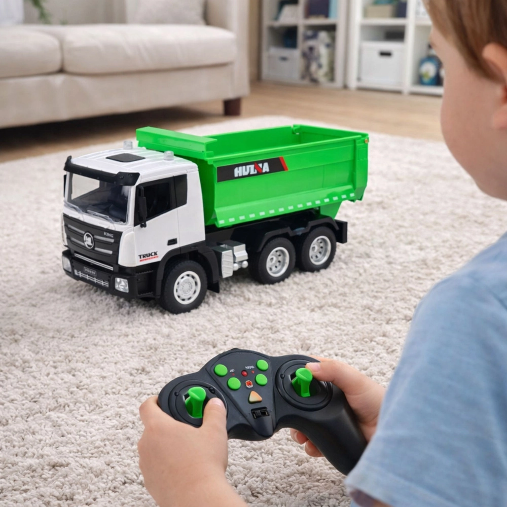 Objevte odolné RC nákladní auto HUINA, které věrně napodobuje skutečný stavební vůz. V měřítku 1:18 nabízí plynulou jízdu vpřed/vzad a přesné zatáčení, zatímco dálkově ovládaná vyklápěcí korba snadno vysype písek či drobný štěrk. Díky světelným a zvukovým efektům působí hra maximálně realisticky.