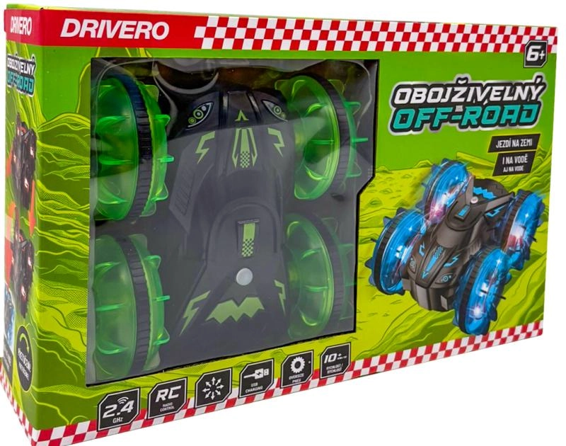 Obojživelný RC offroad Drivero kombinuje odolnost, rychlost a svobodu pohybu na různých površích. Díky utěsněné konstrukci zvládá jízdu po souši i ve vodě, přičemž průhledná kola s LED diodami vytvářejí působivý světelný efekt. Ovládání na frekvenci 2,4 GHz zajišťuje stabilní dosah a bezproblémovou jízdu bez vzájemného rušení.