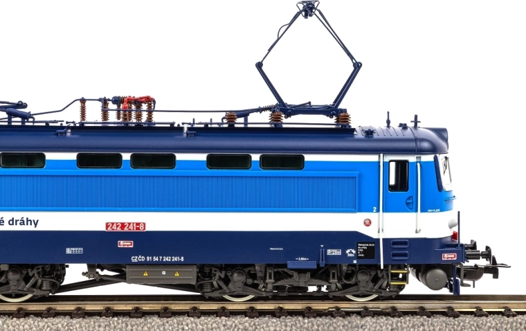 Elektrická lokomotiva ČD řady 242 z epochy VI, přezdívaná „Plecháč“, přináší do modelového světa věrné zpracování ikonického stroje nasazovaného v osobní i lehčí nákladní dopravě. Model od Piko zaujme prototypově přesnými detaily podvozků, střešní výzbroje a kabin, které skvěle doplňuje kvalitní lak a potisk.