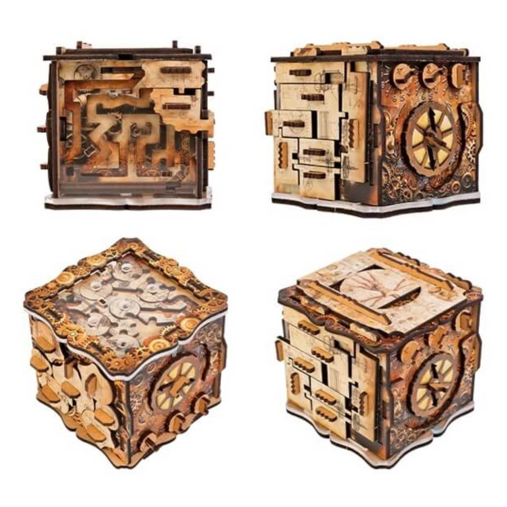 iQube Light je originální hlavolamová krabička, která kombinuje chytré mechanismy, posuvné prvky a tajné zámky do pohlcujícího zážitku. Na otevření nepotřebujete baterie ani hrubou sílu – jen trpělivost, logiku a šikovné prsty. Díky elegantnímu steampunk/technickému vzhledu je zároveň i stylovou dekorací do interiéru.