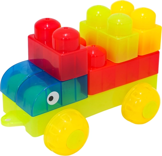 Podvozek s koly a dílky se stříškou umožní rychle vytvořit autíčko, zvířátko nebo postavičku – zábava i učení v jednom.