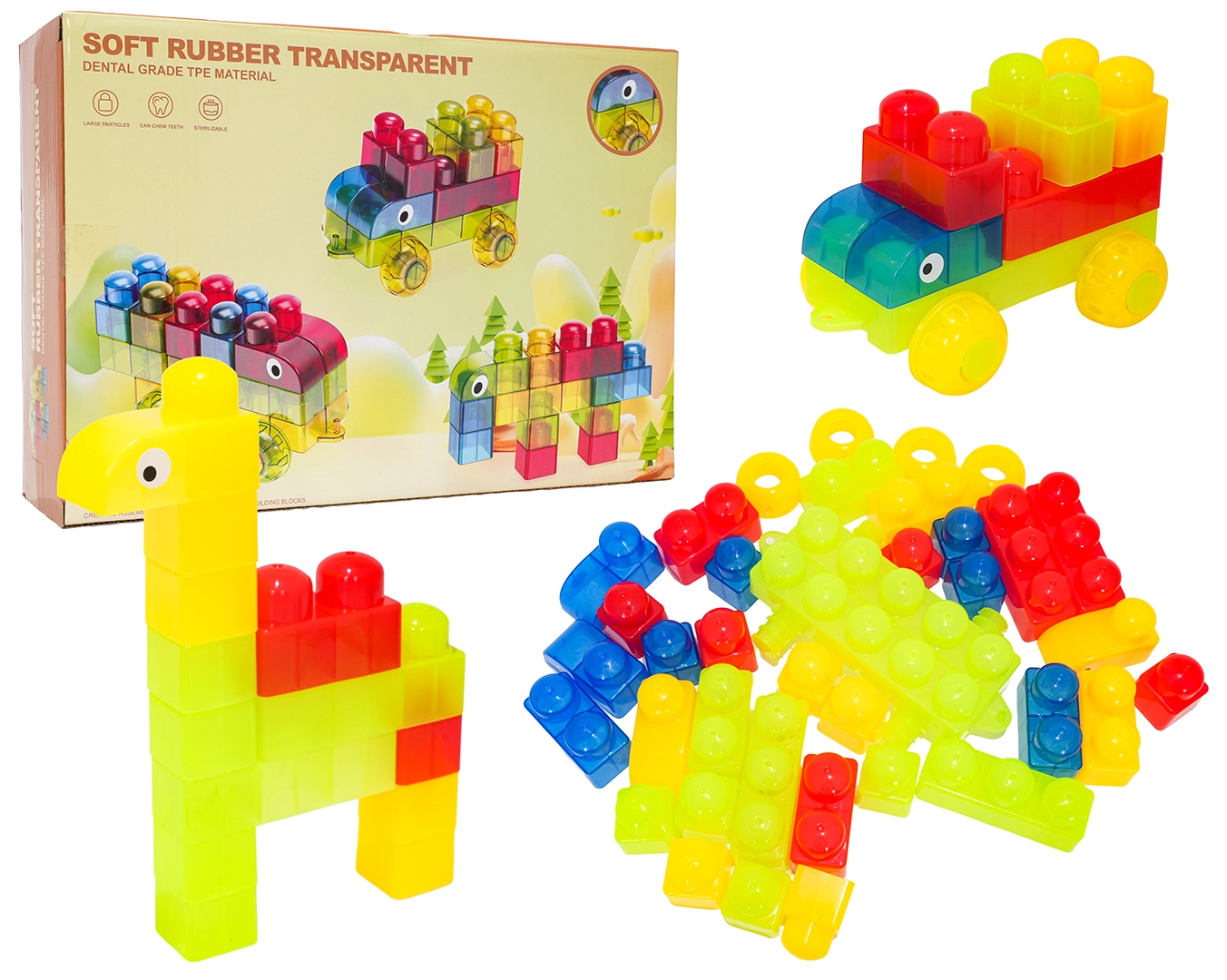 Objevte zábavnou sadu pro nejmenší: měkké gelové kostičky z TPE v počtu 37 dílků, vhodné od 12 měsíců. Díly jsou průhledné, bezpečné a snadno se spojují, takže děti mohou stavět vozítka, zvířátka i fantazijní tvary a přitom rozvíjet kreativitu a jemnou motoriku.