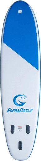 Paddleboard FunWater je navržen pro jistý postoj a snadné ovládání v různých podmínkách. Tloušťka 15 cm a šířka 82 cm přináší výbornou stabilitu, zatímco odnímatelné ploutve zlepšují držení směru a manévrovatelnost. Protiskluzová EVA podložka dodá jistotu kroku i při mokrém povrchu – ideální pro rekreační pádlování, fitness i jógu na vodě.