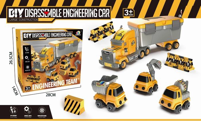 Objevte realistickou sadu pro malé stavitele: nákladní kontejnerový tahač s přívěsem a stavebními vozidly. Díky působivým rozměrům a detailnímu zpracování přináší tato hračka hodiny kreativní zábavy. Robustní provedení, velký přívěs a stavební stroje připravené do akce potěší každého malého řidiče i sběratele.