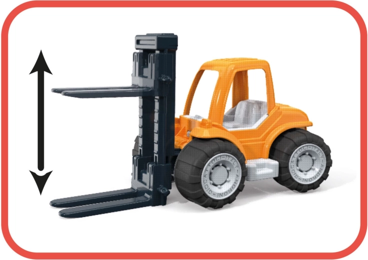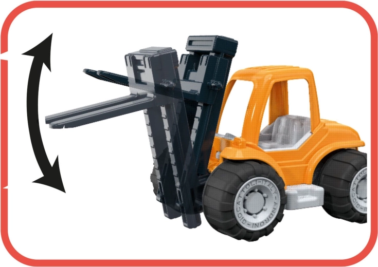 Pohyblivé vidlice umožní dětem zvedat a převážet drobné předměty i přiložené bloky, čímž podporují koordinaci a jemnou motoriku.