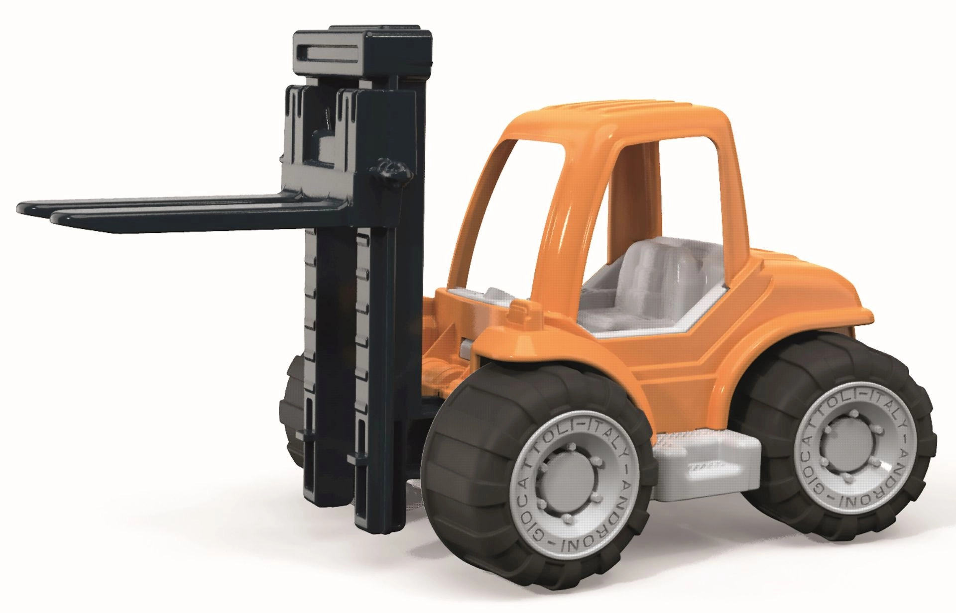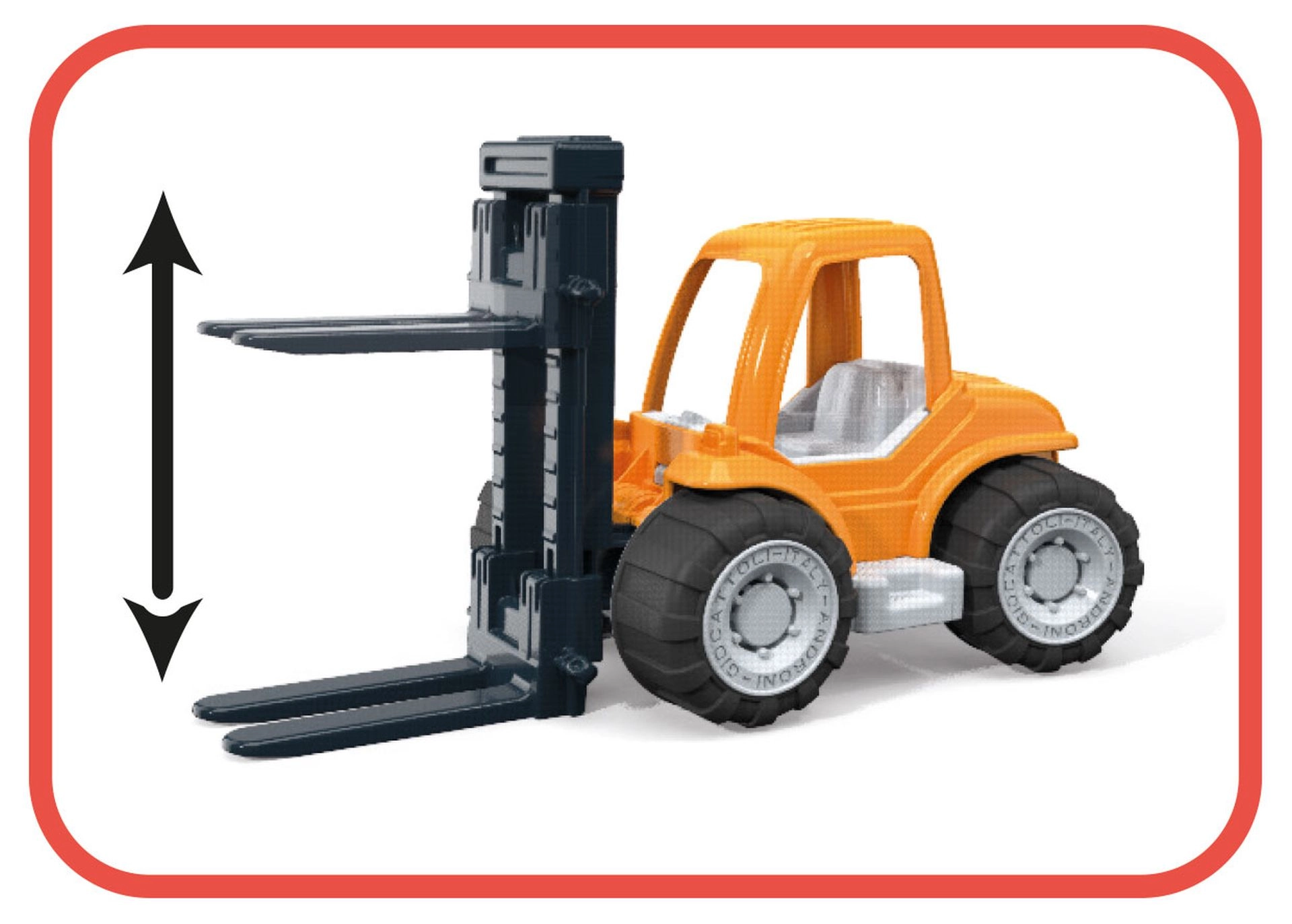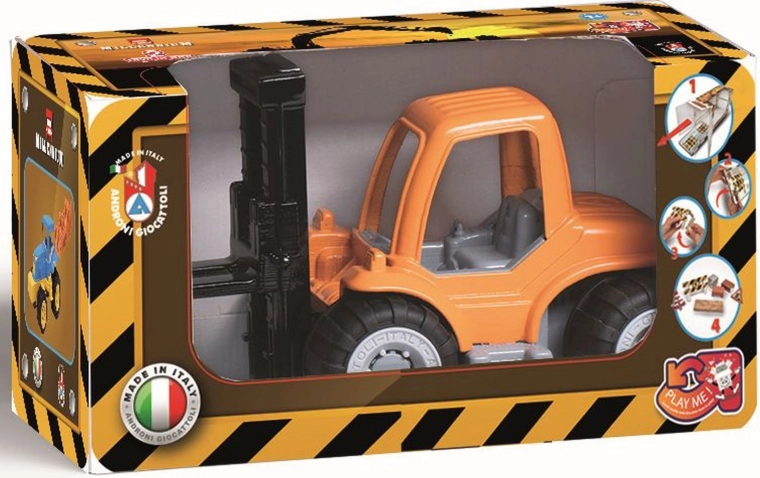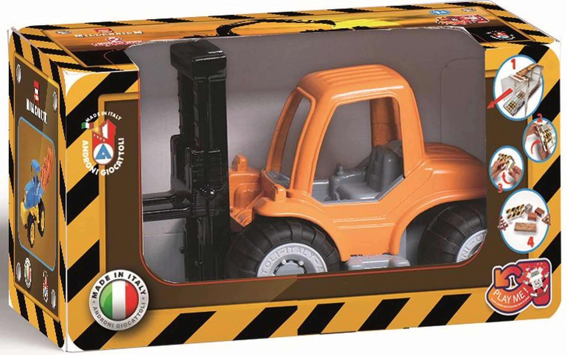 Robustní plastový vysokozdvižný vozík z řady Millennium od značky Androni potěší malé stavitele už od 10 měsíců. Má pohyblivou zdvihací vidlici, pogumovaná kola pro stabilitu a je dodáván s kartonovými bloky pro tvorbu herních scénářů. Vyrobeno v Itálii z kvalitních plastů.