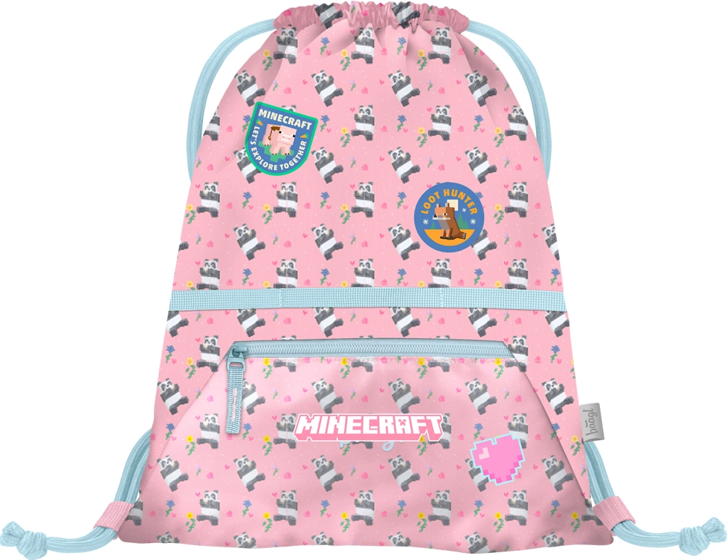 Lehký a ergonomický školní set BAAGL Airy s motivem MINECRAFT Panda potěší každého malého školáka. Obsahuje ultralehký batoh 750 g s prodyšnými zády a nastavitelnými popruhy, jednopatrový penál s přehlednou organizací a vak se zipovou kapsou na přezůvky či sport. Vyrobeno z recyklovaných a voděodolných materiálů, doplněno o reflexní prvky a vyměnitelné odznáčky pro zábavnou personalizaci.