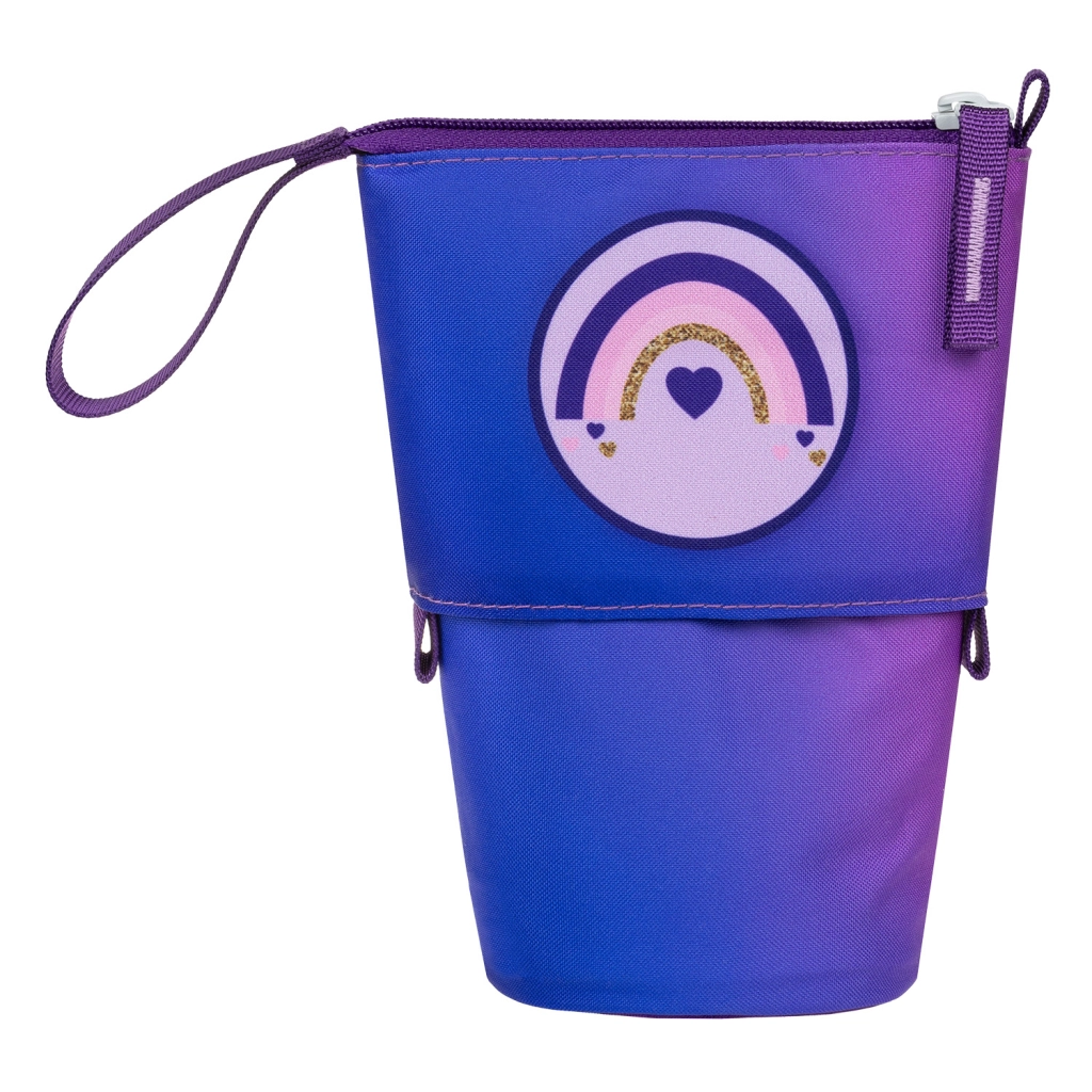 Díky chytrému mechanismu se penál jediným tahem promění v praktický stojánek – už žádné vysypávání obsahu na lavici. Uvnitř navíc najdete tajnou kapsu na gumu, ořezávátko či další drobnosti. Certifikace Global Recycled Standard (GRS) a potvrzení od Textile Exchange zaručují udržitelný původ materiálů.