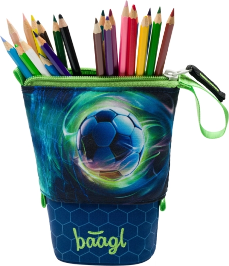 Objevte chytré a odolné řešení pro školní pomůcky. Pastelkovník Baagl s motivem fotbalového míče kombinuje moderní vzhled, funkčnost a udržitelnost. Pevná, voděodolná konstrukce drží tvar a chrání pastelky, fixy i další drobnosti, zatímco praktický mechanismus umožní jedním tahem proměnit pouzdro ve stojánek.