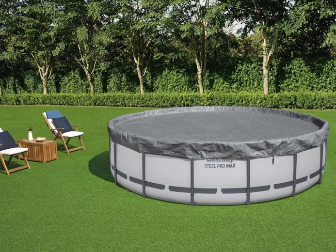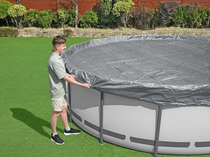Udržujte vodu v bazénu čistší po delší dobu. Prémiová krycí plachta BESTWAY s průměrem 4,57 m je navržená pro kulaté nadzemní bazény a kombinuje pevnost, odolnost vůči UV záření a spolehlivé uchycení. Integrované drenážní otvory zabraňují tvorbě kaluží na povrchu a usnadňují každodenní používání.