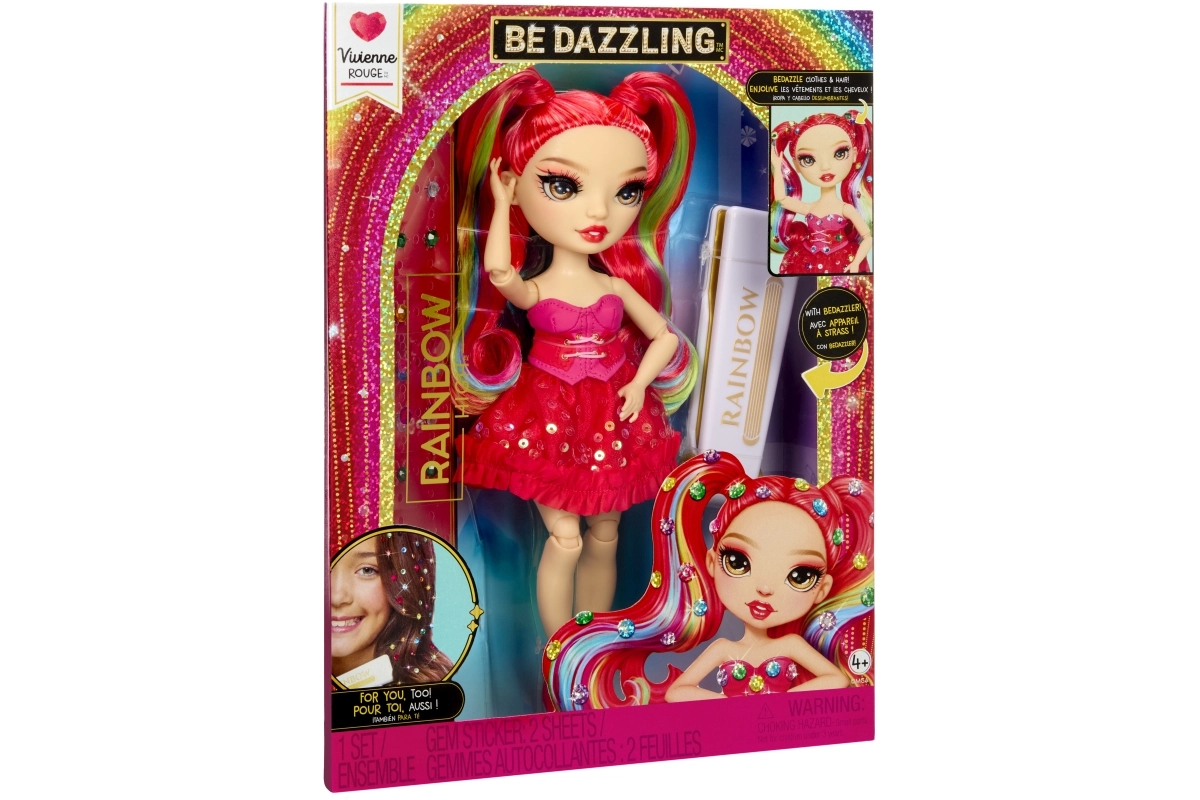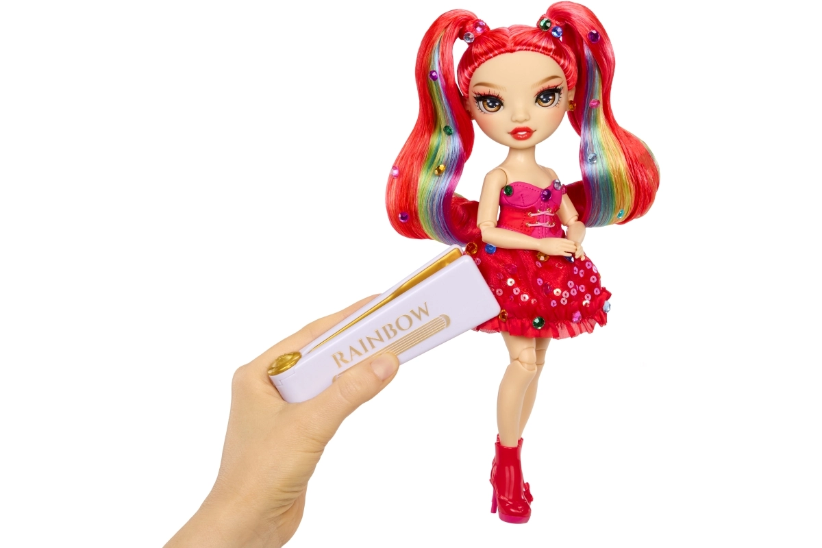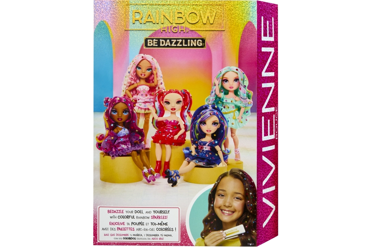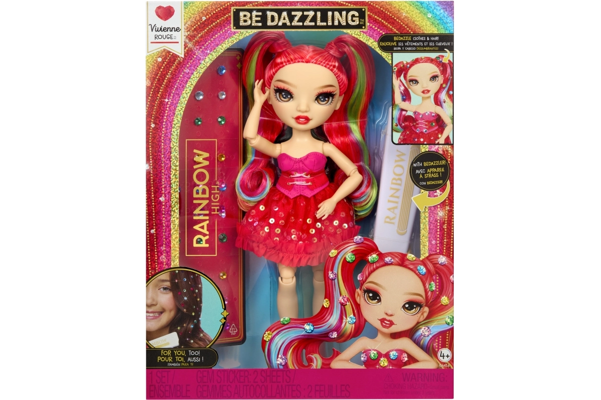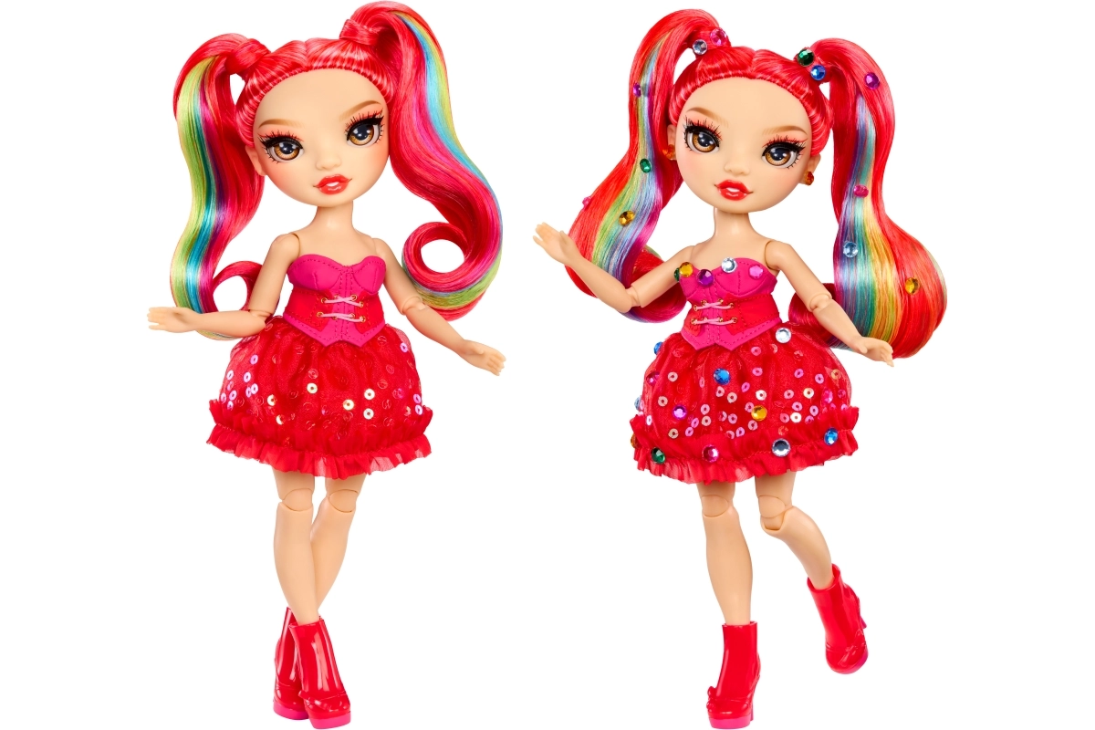 Panenka Rainbow High Vivienne Rouge přináší do tvé sbírky výraznou červenou energii a módu inspirovanou spektrem duhy. Její dlouhé česatelné vlasy s duhovými prameny, třpytivé šaty a ladící boty umožňují vytvářet působivé kombinace pro hraní i vystavení. Díky kloubům v pažích, nohách a hlavě ji snadno nastavíš do různých póz.
