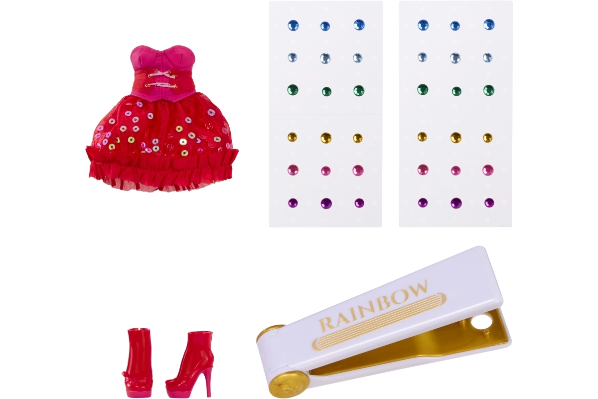 S přiloženým nástrojem Rainbow High můžeš rychle a snadno aplikovat barevné kamínky na vlasy nebo oblečení a během chvilky vytvořit jedinečný glam look. Tato sada podporuje kreativitu, sebevyjádření a rozvoj jemné motoriky — ideální dárek pro malé stylistky i sběratelky.