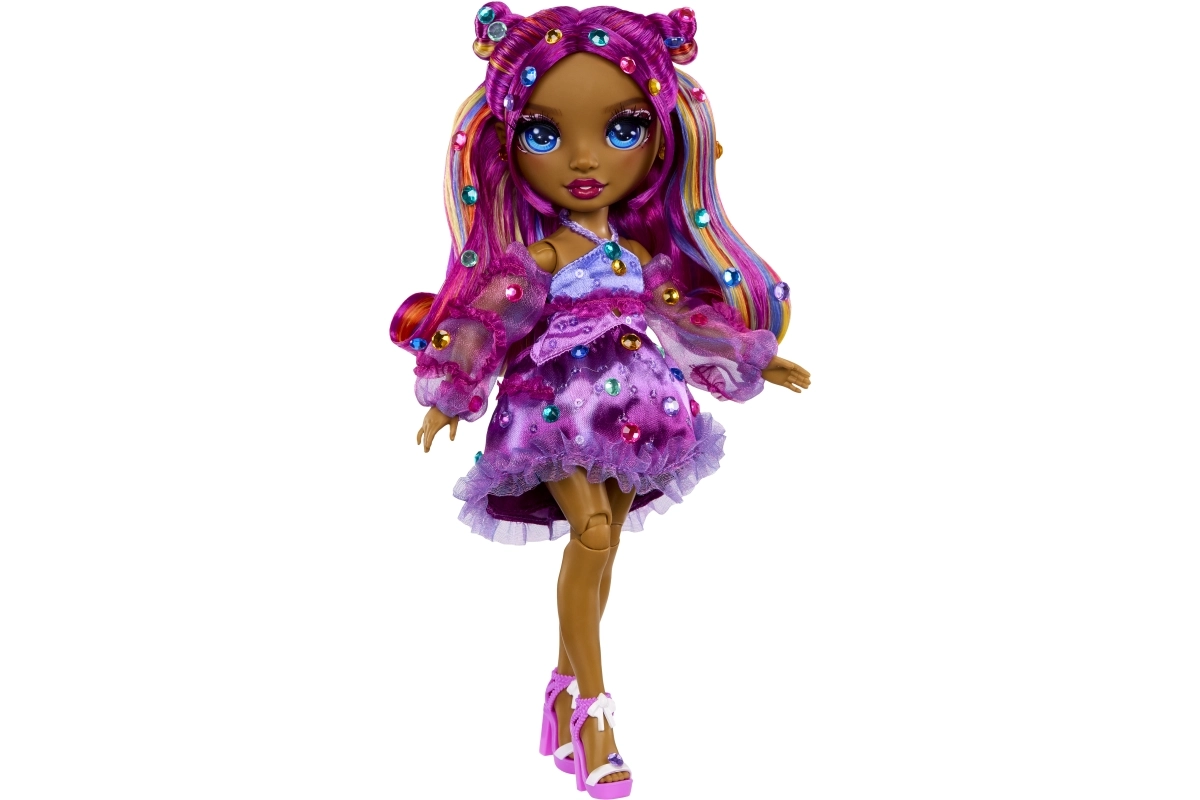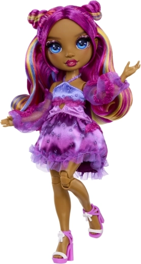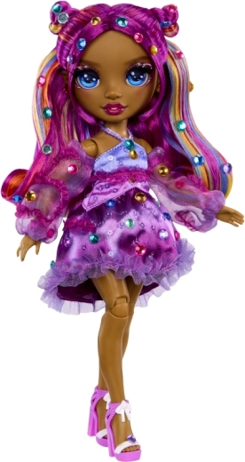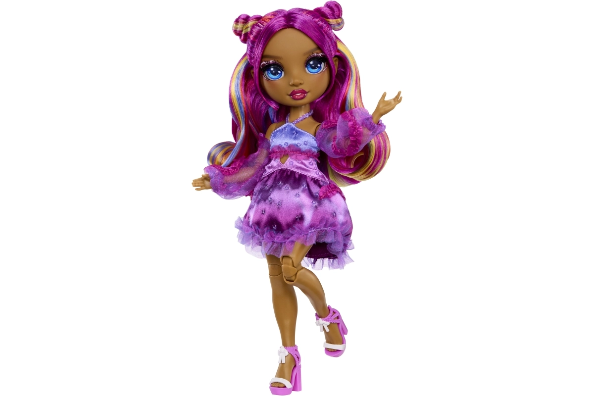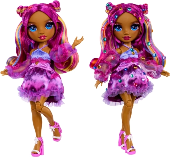 Panenka Noemie Violette přináší do světa RAINBOW HIGH výraznou fialovou stylizaci, detailní make-up a outfit s volánky, který si zamilují všechny milovnice módního hraní. Díky artikulaci v kolenou, loktech a zápěstích je ideální pro pózování i kreativní focení.