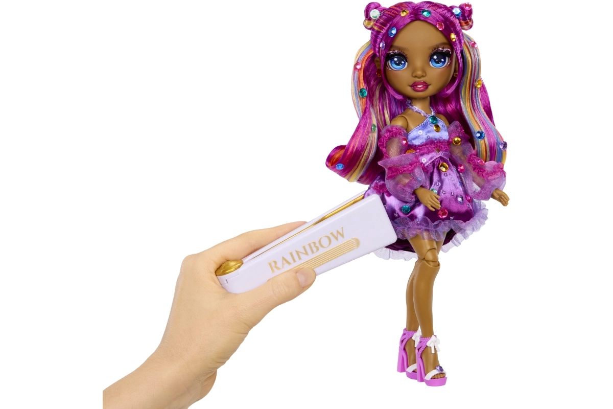 Pomocí krimpovacího nástroje RAINBOW snadno aplikuješ barevné kamínky do vlasů panenky i na její šaty pro oslnivý look.