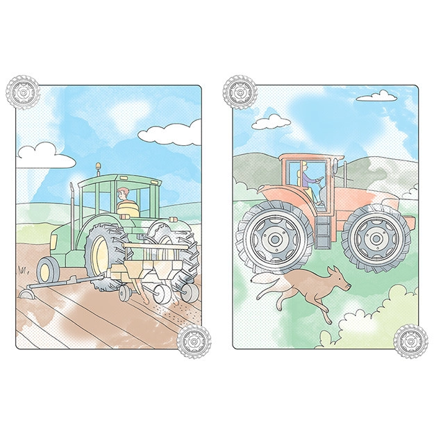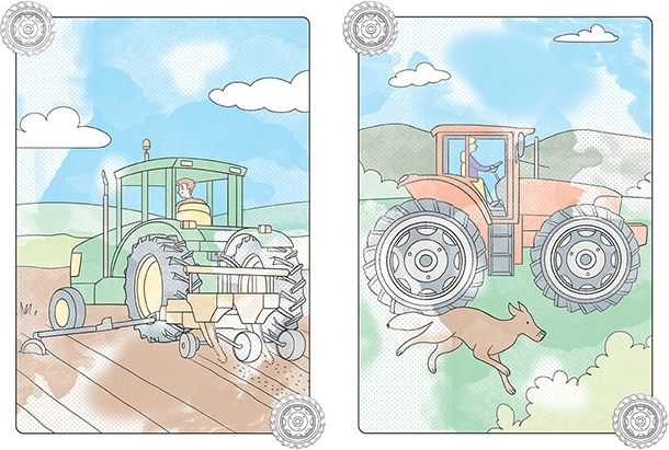 - 8 magických obrázků s motivy traktorů a zemědělských strojů.