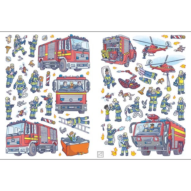 Tato atraktivní samolepková knížka s tématem hasičů nadchne malé milovníky zásahových vozů, záchranářů a napínavých scén. Díky metalickým samolepkám se každá stránka rozzáří a děti si mohou vytvářet vlastní příběhy, rozvíjet představivost a trénovat jemnou motoriku.